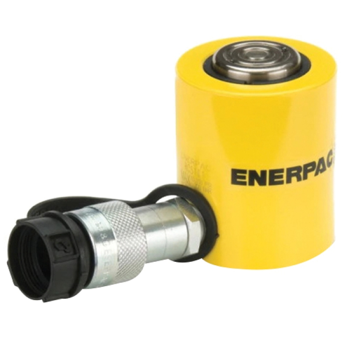 Enerpac® Low Height Hydraulic Cylinder, Series: RCS, 1.69 in Bore Diameter, 1-1/2 in Length Stroke, 3.47 in Length Retracted, 1-1/2 in Rod, 10000 psi, Material Construction: Steel, Finish: Baked Enamel, 11.2 ton Capacity, 1-1/2 in Solid Plunger, 3.47 in Collapsed x 4.97 in Extended Height, 2-3/4 in OD