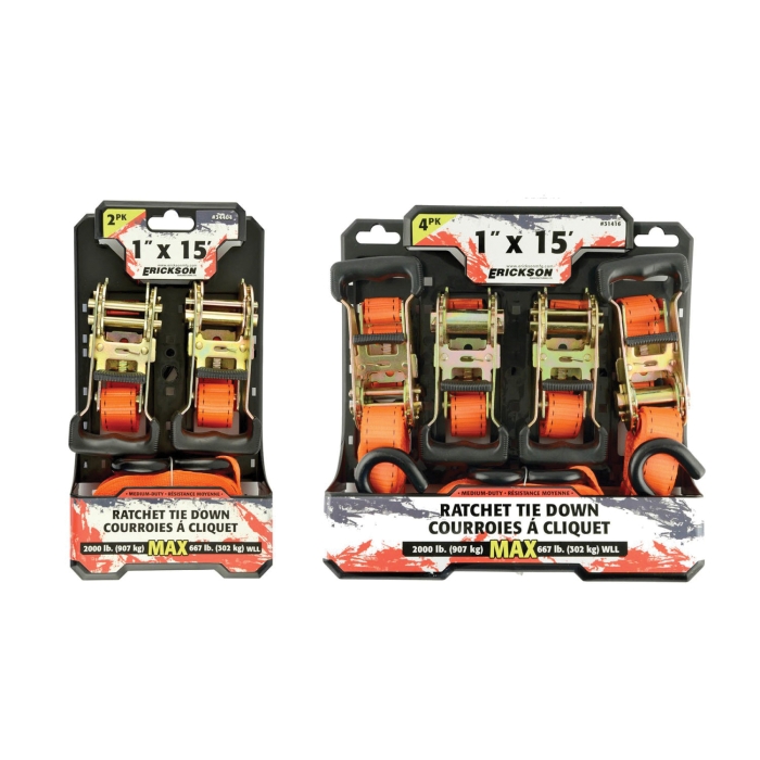 Erickson 34404 Ratcheting Tie Down, 15 ft L, 1 in W, 2000 lb