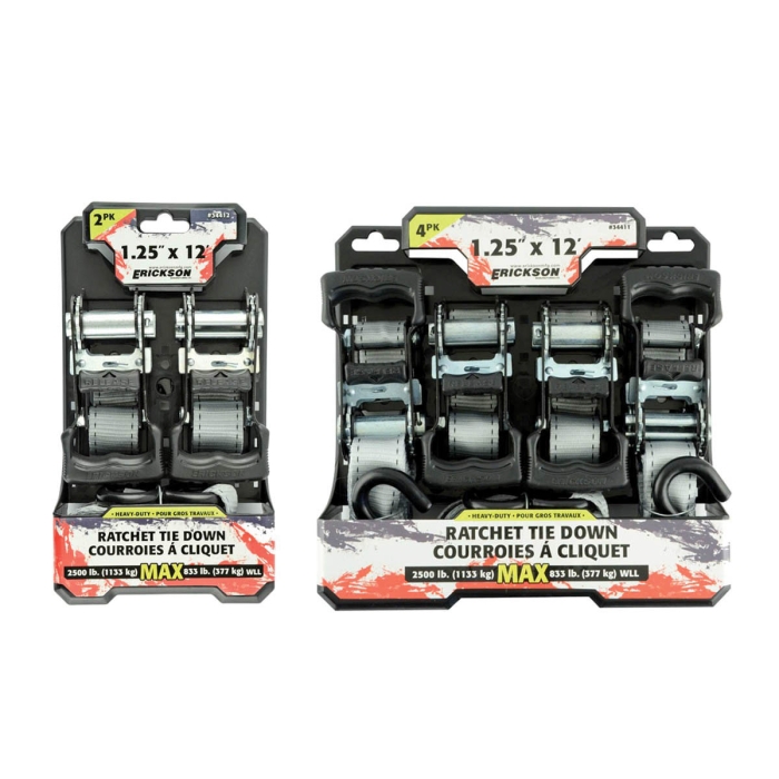 Erickson 34412 Gray Silver Polyester Ratcheting Tie Down, 12 ft L, 1-1/4 in W, 2500 lb