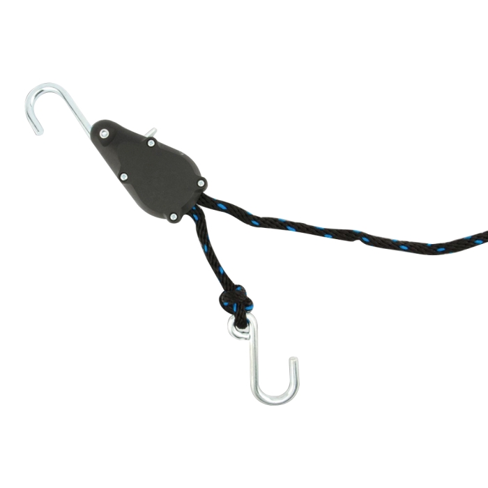 TITE ROPE® is just that, a simple pull and lock mechanism that is easy-to-use. Simply pull on the end of the rope with no hook until tite, to unlock simply lift up on the release tab, just that simple.