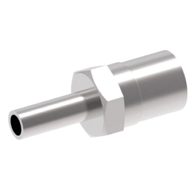 Everflex® Everswage Swage Hose Straight Tube Stub, Connection Type 1: Hose, Connection Size 1: 13/32 in, Connection Type 2: Tube, Connection Size 2: 1/2 in, Hex Size: 7/8 in, Cut-Off Factor: 1-3/8 in, Material Construction: Stainless Steel, For Use With: Everflex STW, SCTW, B, M, S, and SC Series Hoses, Dimensions: 2.25 in L x 0.875 in W x 1.01 in H