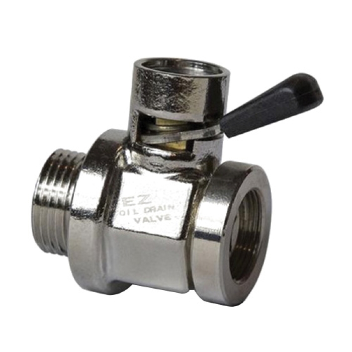 EZ Oil Drain® Valve Medium Engine Oil Drain Valve, Connection Type 1: Threaded, Connection Size 1: 1/2 in, Thread Size 1: 1/2-14, Connection Type 2: Hose, Connection Size 2: 5/8 in