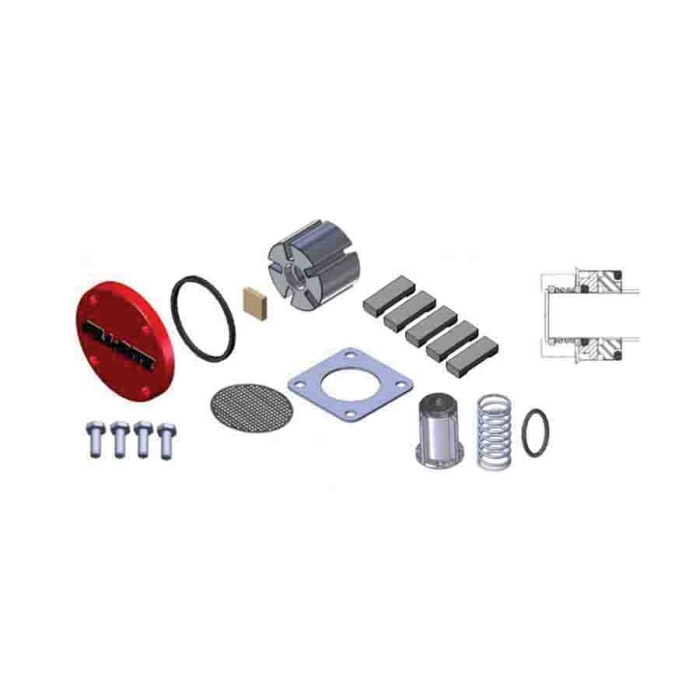 Fill-Rite® Rebuild Kit, For Use With: FR1200G, FR2400G, FR4200G, FR4400G, FR600G, SD1200G, and SD600G Series Fuel Transfer Pumps, Includes: (1) Inlet Gasket and Screen, (4) Rotor Cover Bolts, (1) Rotor Cover, (1) Rotor Cover Gasket, (1) Rotor Key, (1) Rotor (1) 1.2485 in L Bronze Vanes, (1) KT120SL Shaft Seal, (1) Bypass Valve, (1) Spring and (1) O-Ring