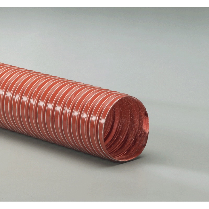 Flexaust® Heat-Flex® 2-Ply Ducting Hose, Series: GS, Nominal Size: 4 in, 4 in ID, 1 ft Length, 30 psi, Material Construction: Fiberglass Fabric, Construction: Double-Ply Iron Oxide Red Silicone Coated Fiberglass Fabric, Finish: Silicone-Coated, Iron Oxide Red, 3 in Bend Radius, Resistance Properties: Alkalis, Fungus, Oils, Ozone, Solvents, Water, -65 deg F Low, 550 deg F High