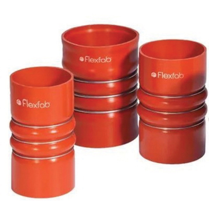 Flexfab® CAC Hose, Nominal Size: 3 in, 3.23 in OD, 3 in ID, 0.085/0.135 in Thick Wall, 6 in Length, 60 psi, Material Construction: Silicone, Construction: 4-Ply Silicone-Coated Meta-Aramid Fabric with Stainless Steel Pressure Retention Rings, Red, Resistance Properties: Extreme Temperature, -65 deg F Low, 500 deg F High