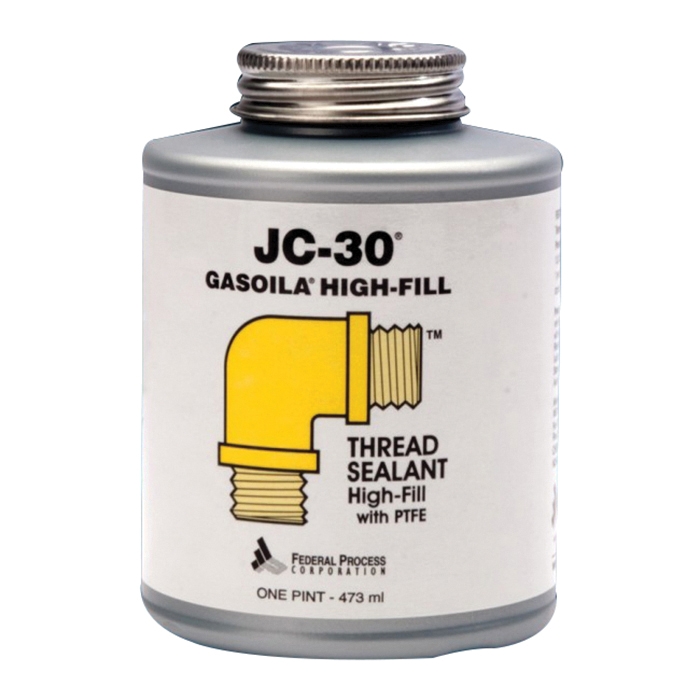 Gasoila® High-Fill Thread Sealant, Series: JC-30®, Container Size: 0.25 pt, Container Type: Brush Top Can, Liquid, White, Mild Fatty Oil-Like, Composition: Castor Oil, Specific Gravity: 1.41, -250 to 500 deg F, Flammability Rating: 2, Applicable Materials: Aluminum, Carbon, Iron, Monel, Plastic, Stainless Steal, Synthetic Rubber, For Use With: Freon™ 22 Refrigerant