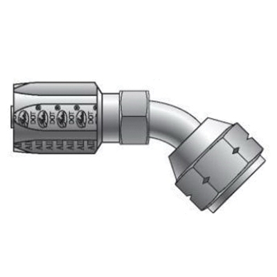 Gates® DOT Type A1 Field Attachable Reusable 45 deg Elbow, Connection Type 1: Hose, Connection Size 1: 5/8 in, Hose Dash Size: 10, Connection Type 2: SAE 45 deg Flare Swivel, Gender 2: Female, Connection Size 2: 3/4 in, Nominal Size: 3/4 in, Thread Size 2: 1-1/16-14, Hex Size: 1.25 x 0.78 in, Cut-Off Factor: 2.1875 in, Material Construction: Steel, For Use With: Gates C5E Hose