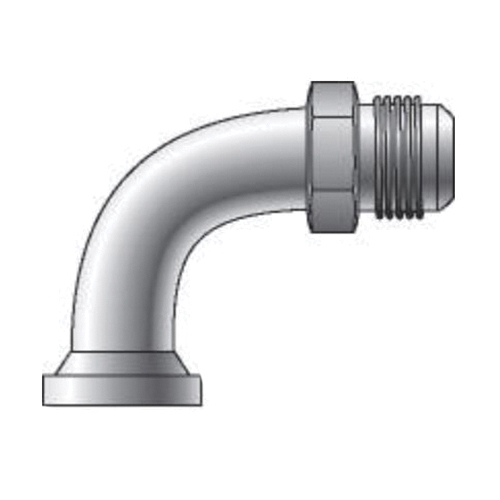 Gates® High-Pressure 90 deg Elbow, Connection Type 1: Code 62 Flange, Connection Size 1: 3/4 in, Connection Type 2: 37 deg JIC Flare, Gender 2: Male, Connection Size 2: 1 in, Thread Size 2: 1-5/16-12, 6000 psi, Material Construction: Steel