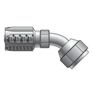 Gates® DOT Type A1 Field Attachable Reusable 45 deg Elbow, Connection Type 1: Hose, Connection Size 1: 5/16 in, Hose Dash Size: 05, Connection Type 2: 37 deg JIC Flare Swivel, Gender 2: Female, Connection Size 2: 3/8 in, Nominal Size: 3/8 in, Thread Size 2: 9/16-18, Hex Size: 1/2 x 11/16 in, Cut-Off Factor: 1.45 in, Material Construction: Steel, For Use With: Gates C5E Hose
