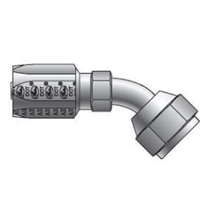 Gates® DOT Type A2 Field Attachable Reusable 45 deg Elbow, Connection Type 1: Hose, Connection Size 1: 5/16 in, Hose Dash Size: 05, Connection Type 2: 37 deg JIC Flare Swivel, Gender 2: Female, Connection Size 2: 3/8 in, Nominal Size: 3/8 in, Thread Size 2: 9/16-18, Hex Size: 1/2 x 11/16 in, Cut-Off Factor: 1.48 in, For Use With: Gates C5C, C5CXH, C5D and C5M Hoses