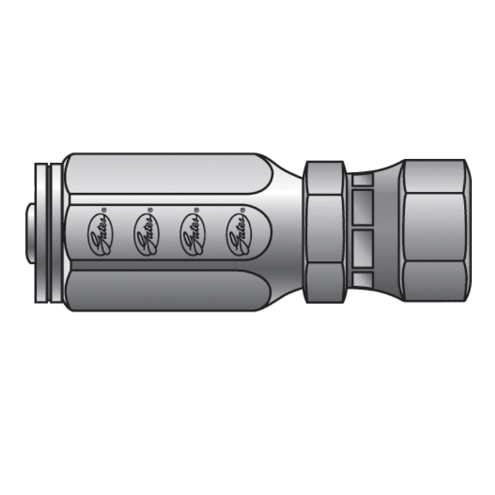 Gates® Field Attachable Type T Reusable Straight Hose Fitting, Connection Type 1: Hose, Connection Size 1: 1/2 in, Hose Dash Size: 08, Connection Type 2: 37 deg JIC Flare Swivel, Gender 2: Female, Connection Size 2: 5/8 in, Nominal Size: 5/8 in, Thread Size 2: 7/8-14, Hex Size: 13/16 x 1-1/16 in, Cut-Off Factor: 1.99 in, For Use With: Gates G1 Hose, Dimensions: 3.34 in L