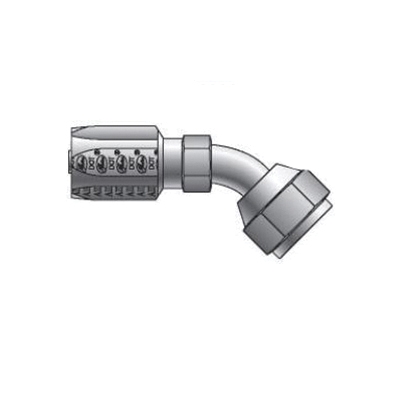 Gates® DOT Type A2 Field Attachable Reusable 45 deg Elbow, Connection Type 1: Hose, Connection Size 1: 13/32 in, Connection Type 2: SAE 45 deg/37 deg JIC Swivel, Gender 2: Female, Connection Size 2: 1/2 in, Nominal Size: 1/2 in, Thread Size 2: 3/4-16, Hex Size: 11/16 x 7/8 in, Cut-Off Factor: 1.73 in, Material Construction: Steel, For Use With: Gates C5C, C5CXH, C5D and C5M Hoses