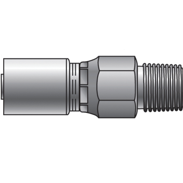 Gates® Crimp Straight Hose Fitting, Series: GL, Connection Type 1: Hose, Connection Size 1: 1-1/2 in, Hose Dash Size: 24, Connection Type 2: 30 deg Cone Seat NPTF, Gender 2: Male, Connection Size 2: 1-1/2 in, Nominal Size: 1-1/2 in, Thread Size 2: 1-1/2-11-1/2, Hex Size: 2 in, Cut-Off Factor: 2.19 in, For Use With: Multi Master® SD MegaFlex®, MegaTech® Pressure Hoses, GMV™ Suction Hoses, Dimensions: 4.83 in L