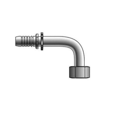 Gates® GlobalSpiral™ Crimp Hose 90 deg Elbow, Connection Type 1: Hose, Connection Size 1: 5/8 in, Hose Dash Size: 10, Connection Type 2: French GAZ Swivel, Gender 2: Female, Connection Size 2: 21 mm, Nominal Size: 21 mm, Thread Size 2: M30 x 1.5, Hex Size: 36 mm, 6000 psi, Cut-Off Factor: 1.64 in, Material Construction: Steel, Finish: TuffCoat®, 250 deg F