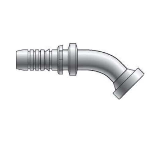 Gates® GlobalSpiral™ Crimp Hose 45 deg Elbow, Connection Type 1: Hose, Connection Size 1: 1 in, Hose Dash Size: 16, Connection Type 2: Caterpillar Style O-Ring Flange, Connection Size 2: 1 in, Nominal Size: 1 in, 6000 psi, Cut-Off Factor: 3.4 in, Material Construction: Steel, Finish: TuffCoat®, 250 deg F