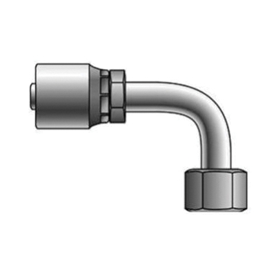 Gates® GlobalSpiral™ Special 1-Piece 90 deg Medium Drop Elbow, Connection Type 1: Hose, Connection Size 1: 1-1/4 in, Hose Dash Size: 20, Connection Type 2: Flat Face O-Ring Swivel, Gender 2: Female, Connection Size 2: 1-1/4 in, Nominal Size: 1-1/4 in, Thread Size 2: 1-11/16-12, Hex Size: 50 mm, 6000 psi, Cut-Off Factor: 3.97 in, Material Construction: Steel, Finish: TuffCoat®, For Use With: MC4-20 Crimper Only, 250 deg F