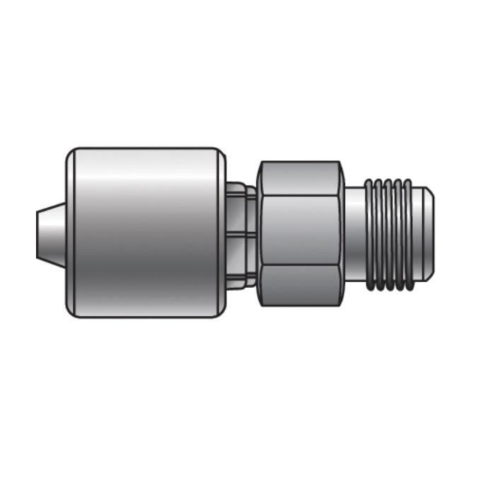 Gates® GlobalSpiral™ Special 1-Piece Crimp Straight Hose Fitting, Connection Type 1: Hose, Connection Size 1: 1-1/4 in, Hose Dash Size: 20, Connection Type 2: 37 deg JIC Flare, Gender 2: Male, Connection Size 2: 1-1/4 in, Nominal Size: 1-1/4 in, Thread Size 2: 1-5/8-12, Hex Size: 1-3/4 in, Cut-Off Factor: 2.12 in, Material Construction: Steel, Finish: TuffCoat®, Dimensions: 4.92 in L, 250 deg F