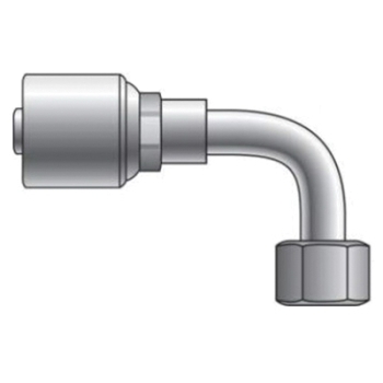 Gates® GlobalSpiral™ Crimp Hose 90 deg Long Drop Elbow, Connection Type 1: Hose, Connection Size 1: 1/2 in, Hose Dash Size: 08, Connection Type 2: 37 deg JIC Flare Swivel, Gender 2: Female, Connection Size 2: 1/2 in, Nominal Size: 1/2 in, Thread Size 2: 3/4-16, Hex Size: 7/8 in, 6000 psi, Cut-Off Factor: 2.15 in, Material Construction: Steel, Finish: TuffCoat®, 250 deg F