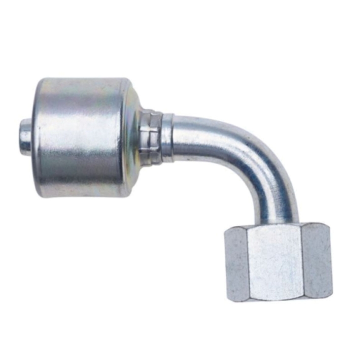 Gates® MegaCrimp® Crimp Hose 90 deg Elbow with O-Ring, Connection Type 1: Hose, Connection Size 1: 5/8 in, Hose Dash Size: 10, Connection Type 2: DIN Heavy 24 deg Cone Swivel, Gender 2: Female, Connection Size 2: 20 mm, Nominal Size: 20 mm, Thread Size 2: M30 x 2, Hex Size: 36 mm, Cut-Off Factor: 1.84 in, Finish: TuffCoat®