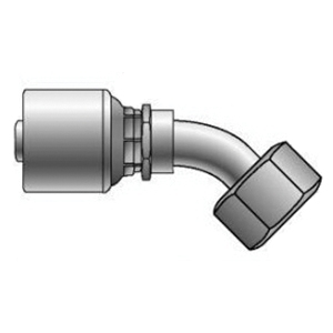 Gates® MegaCrimp® Crimp Hose 45 deg Elbow with O-Ring, Connection Type 1: Hose, Connection Size 1: 1/2 in, Hose Dash Size: 08, Connection Type 2: DIN Heavy 24 deg Cone Swivel, Gender 2: Female, Connection Size 2: 14 mm, Nominal Size: 14 mm, Thread Size 2: M22 x 1.5, Hex Size: 27 mm, Cut-Off Factor: 2.12 in, Finish: TuffCoat®