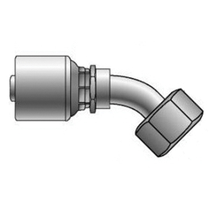Gates® MegaCrimp® Crimp Hose 45 deg Elbow with O-Ring, Connection Type 1: Hose, Connection Size 1: 1/2 in, Hose Dash Size: 08, Connection Type 2: DIN Heavy 24 deg Cone Swivel, Gender 2: Female, Connection Size 2: 16 mm, Nominal Size: 16 mm, Thread Size 2: M24 x 1.5, Hex Size: 30 mm, Cut-Off Factor: 1.91 in, Finish: TuffCoat®