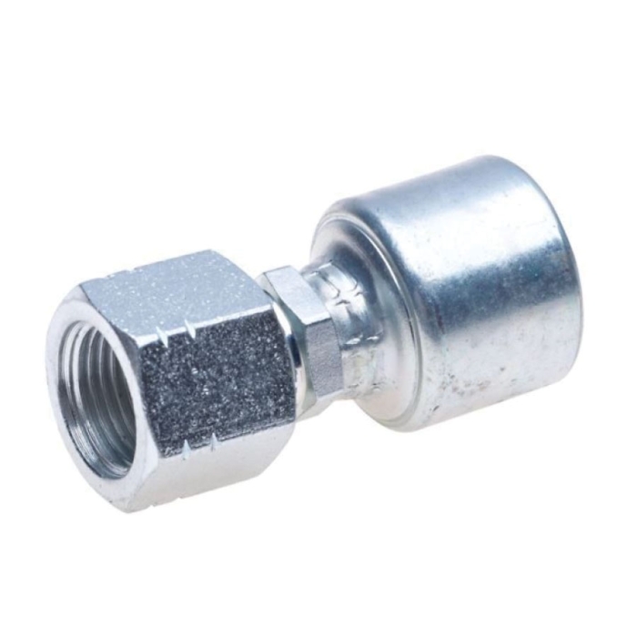 Gates® MegaCrimp® Crimp Straight Hose Fitting, Connection Type 1: Hose, Connection Size 1: 1/2 in, Hose Dash Size: 08, Connection Type 2: Komatsu Swivel, Gender 2: Female, Connection Size 2: 22 mm, Nominal Size: 22 mm, Thread Size 2: M22 x 1.5, Hex Size: 22 x 27 mm, Cut-Off Factor: 1.6 in, Finish: TuffCoat®, Dimensions: 3.07 in L