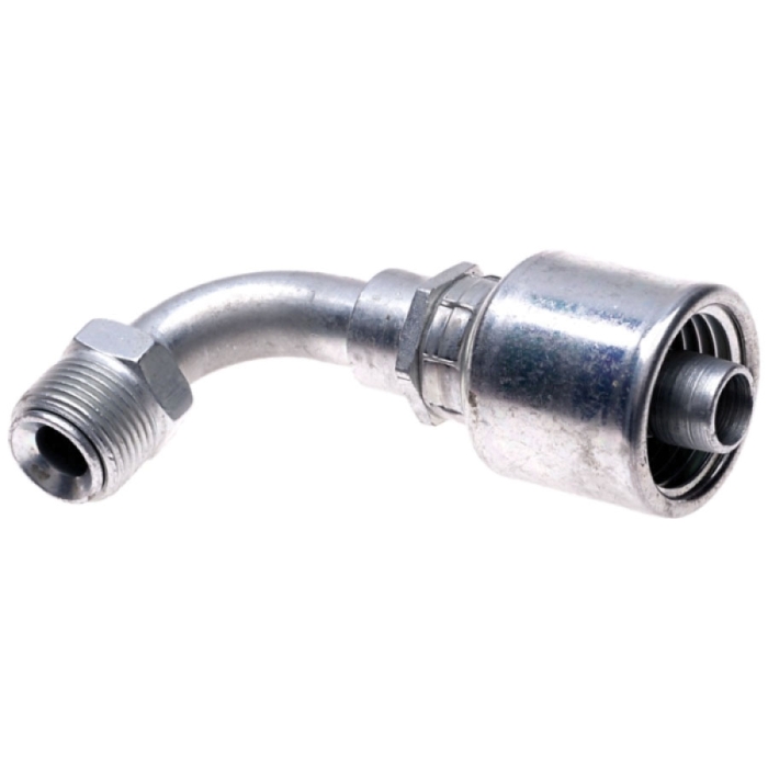 Gates® MegaCrimp® Crimp Hose 90 deg Elbow, Connection Type 1: Hose, Connection Size 1: 1/2 in, Hose Dash Size: 08, Connection Type 2: SAE Inverted Swivel, Gender 2: Male, Connection Size 2: 1/2 in, Nominal Size: 1/2 in, Thread Size 2: 3/4-18, Hex Size: 3/4 in, Cut-Off Factor: 1.81 in, Finish: TuffCoat®