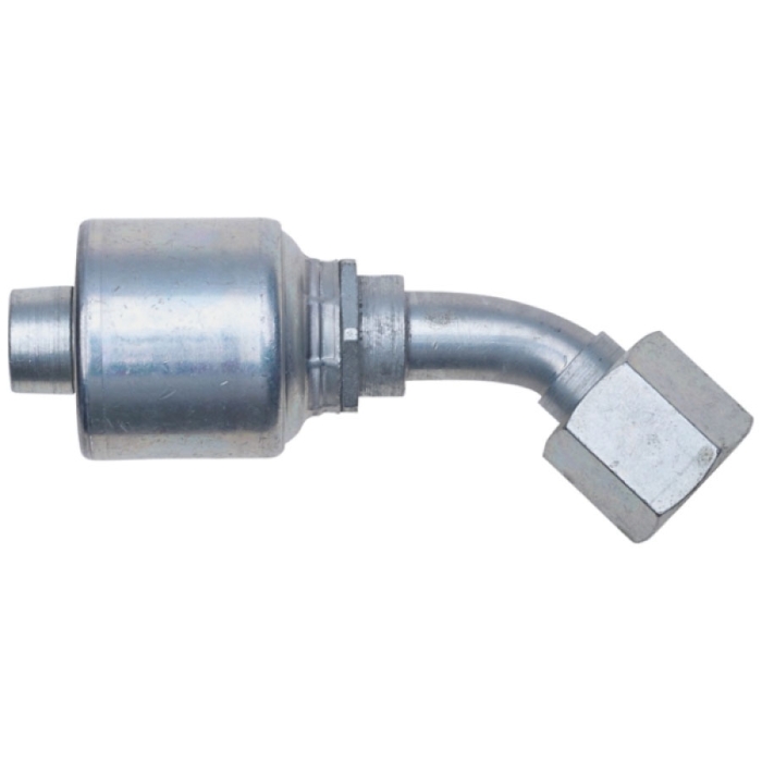Gates® MegaCrimp® Crimp Hose 30 deg Elbow, Connection Type 1: Hose, Connection Size 1: 3/4 in, Hose Dash Size: 12, Connection Type 2: 37 deg JIC Flare Swivel, Gender 2: Female, Connection Size 2: 5/8 in, Nominal Size: 5/8 in, Thread Size 2: 7/8-14, Hex Size: 27 mm, Cut-Off Factor: 2.44 in, Finish: TuffCoat®