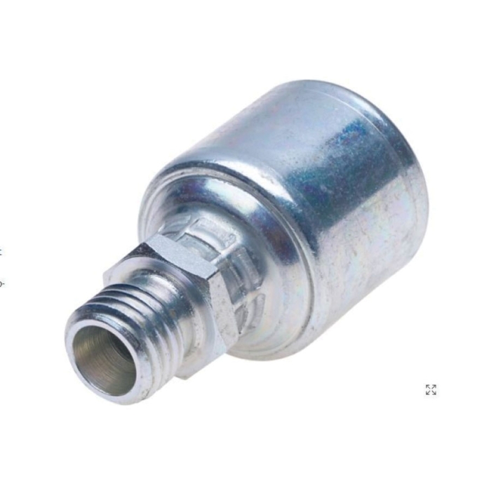 Gates® MegaCrimp® Crimp Straight Hose Fitting, Connection Type 1: Hose, Connection Size 1: 1/2 in, Hose Dash Size: 08, Connection Type 2: DIN Light 24 deg Cone, Gender 2: Male, Connection Size 2: 15 mm, Nominal Size: 15 mm, Thread Size 2: M22 x 1.5, Hex Size: 24 mm, Cut-Off Factor: 1.08 in, Finish: TuffCoat®, Dimensions: 2.56 in L