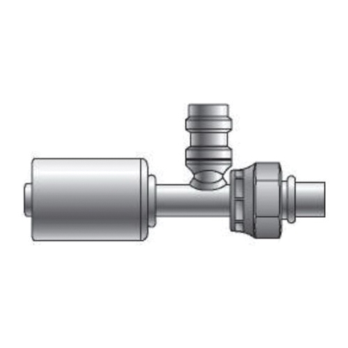 Gates® Polarseal® Straight Hose Fitting with R134a Service Port, Connection Type 1: Hose, Connection Size 1: 1/2 in, Hose Dash Size: 08, Connection Type 2: SAE Tube O-Ring Nut Swivel, Gender 2: Female, Connection Size 2: 5/8 in, Thread Size 2: 7/8-14, Material Construction: Steel, Dimensions: 3.62 in L