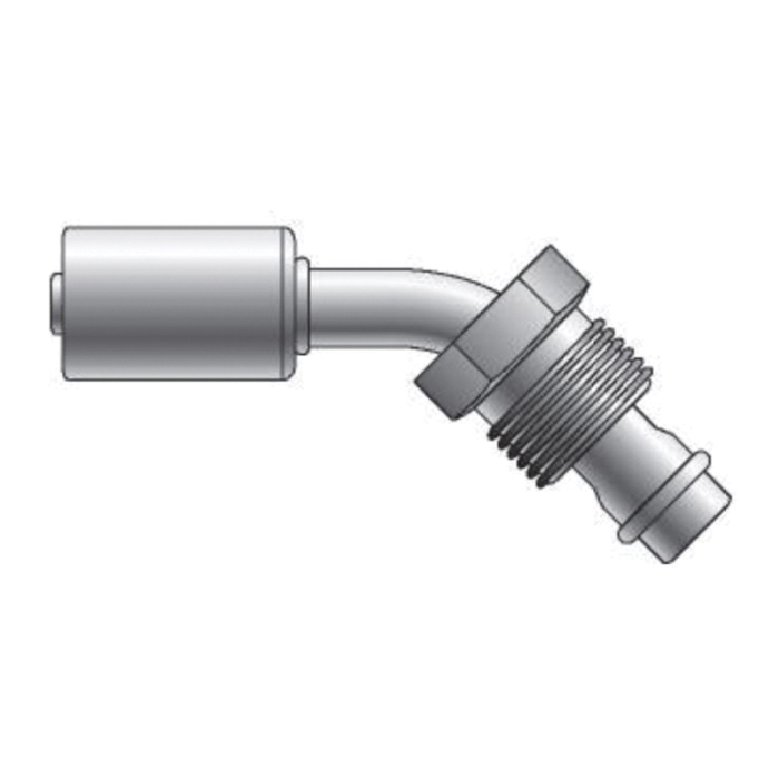 Gates® Polarseal® 45 deg Elbow, Connection Type 1: Hose, Connection Size 1: 1/2 in, Hose Dash Size: 08, Connection Type 2: SAE Tube O-Ring Nut, Gender 2: Male, Connection Size 2: 5/8 in, Thread Size 2: 7/8-18, Material Construction: Aluminum