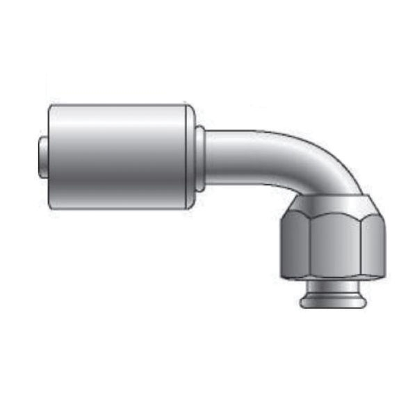 Gates® Polarseal® 90 deg Elbow, Connection Type 1: Hose, Connection Size 1: 5/16 in, Hose Dash Size: 05, Connection Type 2: SAE 45 deg Flare Swivel, Gender 2: Female, Connection Size 2: 3/8 in, Thread Size 2: 5/8-18, Material Construction: Steel