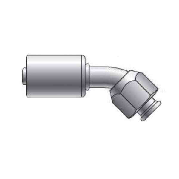 Gates® Polarseal® 45 deg Elbow, Connection Type 1: Hose, Connection Size 1: 13/32 in, Connection Type 2: SAE 45 deg Flare Swivel, Gender 2: Female, Connection Size 2: 1/2 in, Thread Size 2: 3/4-16, Material Construction: Aluminum