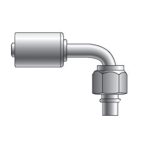 Gates® Polarseal® 90 deg Elbow, Connection Type 1: Hose, Connection Size 1: 5/16 in, Hose Dash Size: 05, Connection Type 2: SAE Tube O-Ring Nut Swivel, Gender 2: Female, Connection Size 2: 3/8 in, Thread Size 2: 5/8-18, Material Construction: Steel