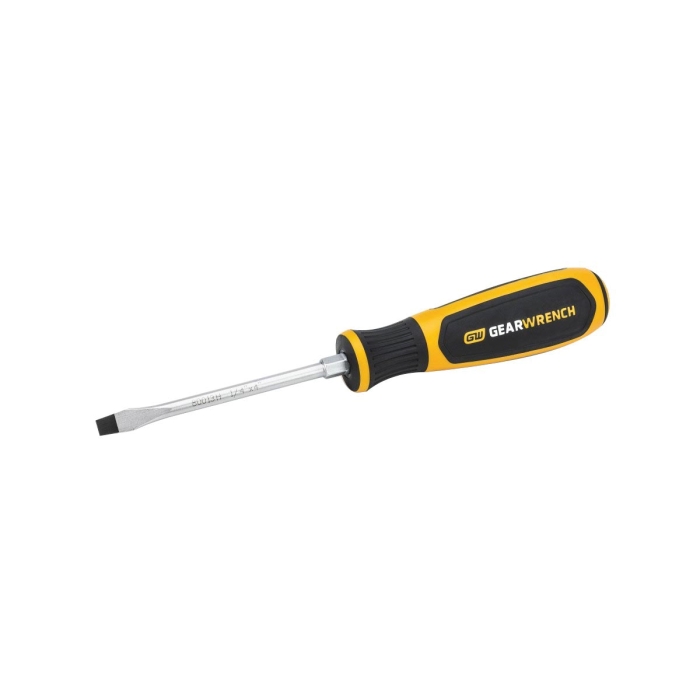 GearWrench® Screwdriver, Measuring System: Imperial, 8.7 in OAL, 4 in Length Shank, Round Shank, Point Size: 1/4 in, 4.61 in Length Handle, Handle Style: Straight, Material Construction: Alloy Steel, Finish: Black Oxide, Slotted Drive