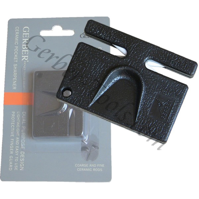 Gerber® ceramic pocket sharpener will sharpen your knife to a razor sharp edge in just a few minutes. It is small enough for the palm of your hand and fits on your keyring. One side of the pocket sharpener has coarse ceramic and the other side has fine ceramic. Drag your blade through-the coarse side then drag through-the fine side to get a sharp edge. This sharpener is pretty amazing. You need not have any experience to use this sharpener. Simply drag the blade through and the knife gets sharp.