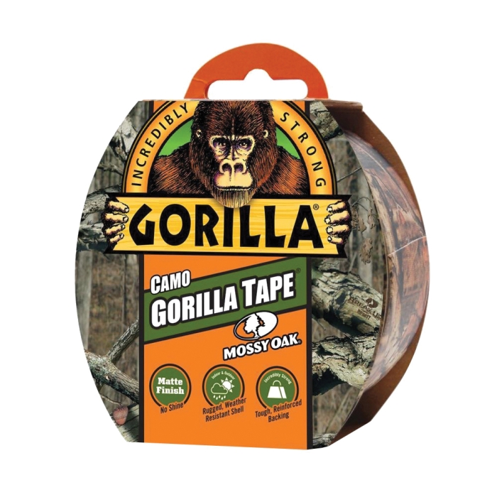With its Mossy Oak ® Break-Up® Country ™ pattern, Camo Gorilla® tape offers the clarity, depth and matte surface to meet your outdoor camouflage needs. Camo Gorilla® tape offers a UV and weather-resistant shell with matte finish. Its ability to stick to smooth, rough and uneven surfaces makes it an ideal tape for applications in the field including duck blinds, tree stands and tent repairs. Camo Gorilla® Tape’s heavy-duty backing provides strength and durability, yet can still be torn by hand. Camo Gorilla® tape, for the toughest jobs on Planet Earth®.
