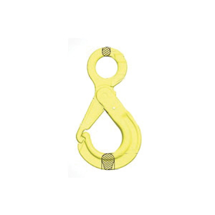 Gunnebo Johnson Self-locking Eye Hook with Grip Latch, Series: OBK, 3/8 in Trade, Load Capacity: 8800 lb, Grade: 100, Hook Opening: 1.9 in, Attachment Type: Grip Latch, 1.3 in Eye Diameter