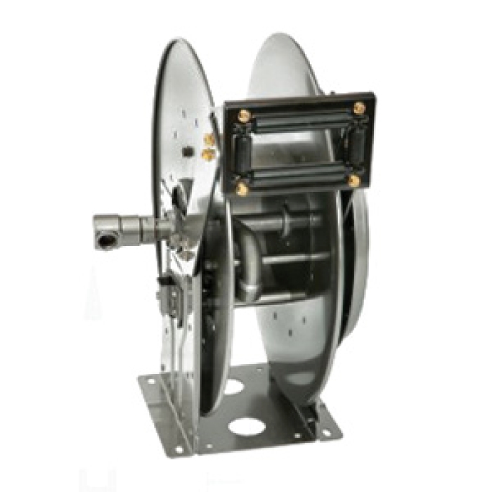 Hannay Reels® Hose Reel, Series: N800, 70 ft Length Hose, 3/4 in Hose Inside Diameter, Inlet Size: 1 in FPT, Outlet Size: 1 in FPT, Winding Method: Spring Rewind, Material Construction: l, -40 to 400 deg F, 2000 psi, Dimensions: 25-1/2 in L x 15 in W x 26 in H, For Use With: Waste oil, Air, Water