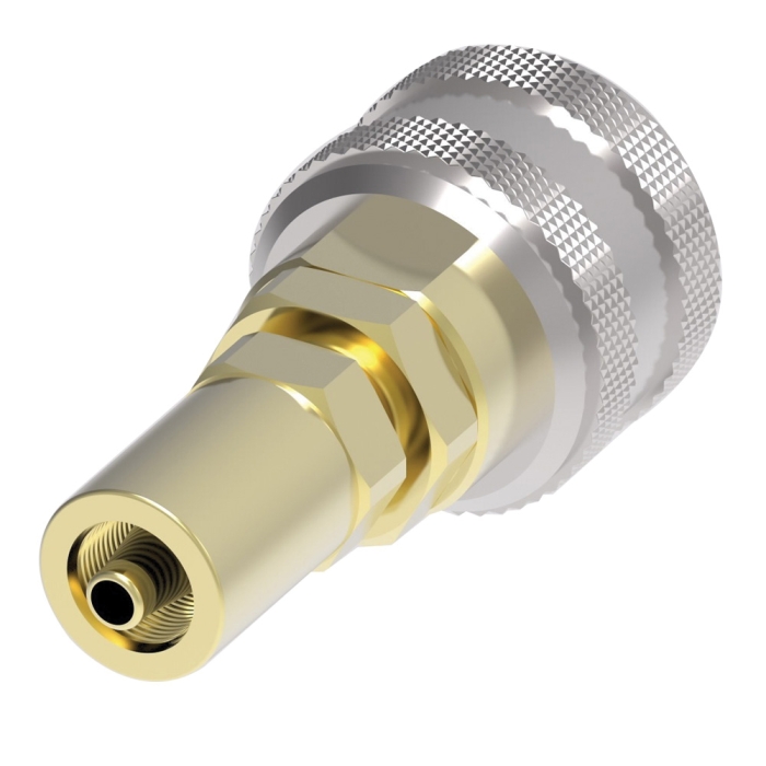 Hansen⢠and Gromelle⢠3000 Brass Coupling with Sleeve Lock, 1/4 in Female Quick Disconnect x 3/8 in ID x 3/4 in OD Hose