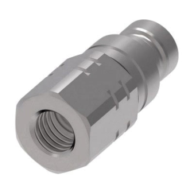 Hansen⢠and Gromelle⢠Interchange Coupling Plug, Series: FF, Connection Type 1: Quick Disconnect, Gender 1: Male, Connection Size 1: 3/8 in, Connection Type 2: NPT, Gender 2: Female, Connection Size 2: 1/2 in, Thread Size 2: 1/2-14, Hex Size: 1.06 in, 5800 psi, Material Construction: Carbon Steel, Finish: Guardian Seal, Dimensions: 2.68 in L x 1.16 in W x 1.16 in H, Dimension Standards: ISO 16028, -13 to 212 deg F