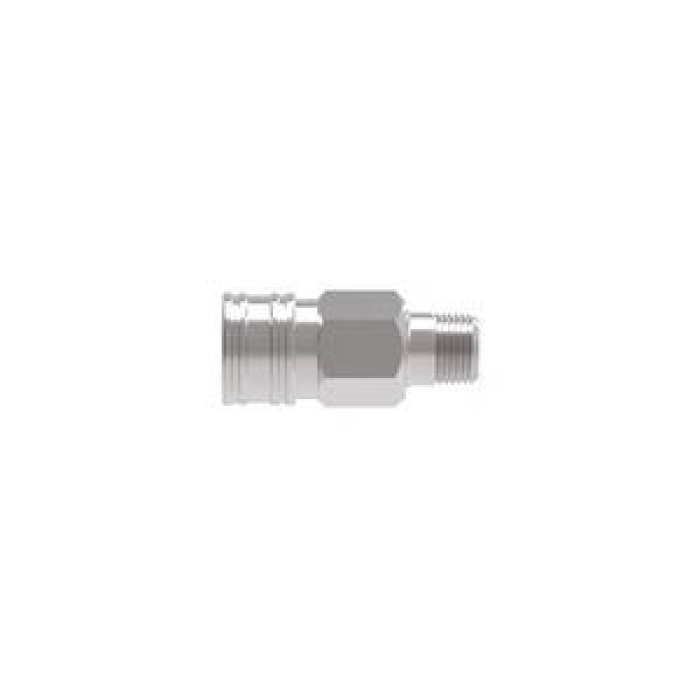 Hansen™ and Gromelle™ Coupling, Series: 180, Connection Type 1: Quick Disconnect, Gender 1: Female, Connection Size 1: 1/8 in, Connection Type 2: NPTF, Gender 2: Male, Connection Size 2: 1/4 in, Thread Size 2: 1/4-18, Hex Size: 0.56 in, 3000 psi, Material Construction: Brass, Dimensions: 1.39 in L, -40 to 250 deg F, For Use With: Compressed Air, Gas, and Liquid