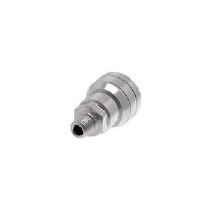 Hansen™ and Gromelle™ Coupling, Series: 3000, Connection Type 1: Quick Disconnect, Gender 1: Female, Connection Size 1: 1/4 in, Connection Type 2: NPTF, Gender 2: Male, Connection Size 2: 3/8 in, Thread Size 2: 3/8-18, Hex Size: 0.69 in, 2000 psi, Material Construction: Brass, Dimensions: 2.15 in L x 1.19 in W x 1.19 in H, -40 to 250 deg F