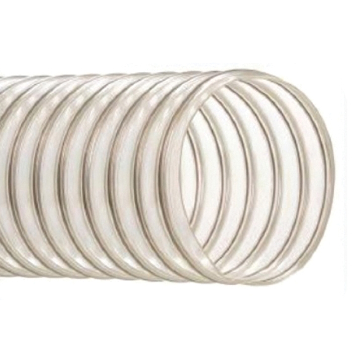 Hi-Tech Duravent UFD Ducting Hose is engineered for durability in high-pressure and vacuum applications, offering superior abrasion and fatigue resistance. Constructed from thermoplastic polyurethane and reinforced with a wire helix, this clear hose allows for easy visual inspection to locate blockages. With a pressure rating of 27 PSI and a flexible 3.5-inch bend radius, it performs reliably in temperatures from -65°F to 200°F. Ideal for chemical fume removal, chip and shaving collection, dust collection, oil mist extraction, and powder transfer, it’s a versatile choice for demanding industrial applications where resilience against moisture, oil, ozone, and UV is essential.