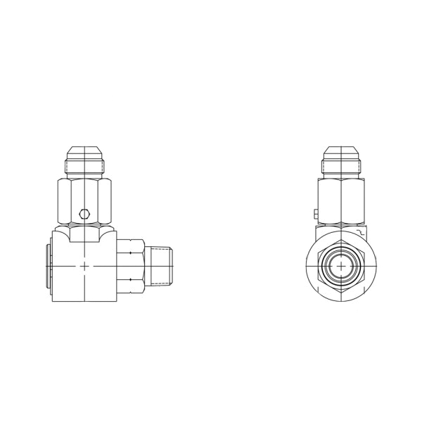 Hydraulics™ 90 deg Dual Plane Hose Swivel, Series: 9SS, Connection Type 1: 37 deg JIC Flare, Gender 1: Male, Connection Size 1: 3/4 in, Thread Size 1: 1-1/16-12, Connection Type 2: NPTF, Gender 2: Male, Connection Size 2: 3/4 in, Thread Size 2: 3/4-14, Hex Size: 1.38 x 1.25 in, 3000 psi, Material Construction: Carbon Steel, Finish: Zinc-Plated, Dimensions: 3.4 in W x 4.18 in H, -30 to 250 deg F