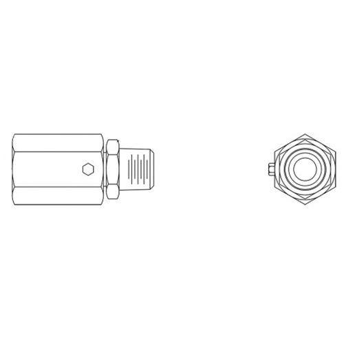 Hydraulics™ In-Line Swivel, Series: S, Connection Type 1: NPTF, Gender 1: Female, Connection Size 1: 1/2 in, Thread Size 1: 1/2-14, Connection Type 2: NPTF, Gender 2: Male, Connection Size 2: 1/2 in, Thread Size 2: 1/2-14, Hex Size: 1-1/4 x 1-1/4 in, 3000 psi, Material Construction: Carbon Steel, Finish: Zinc-Plated, Dimensions: 2.88 in W, -30 to 250 deg F