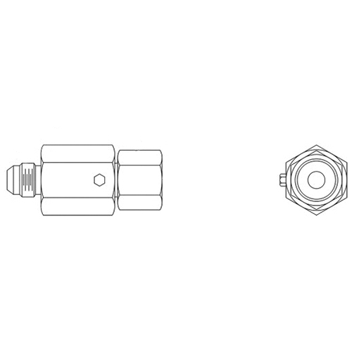 Hydraulics™ In-Line Swivel, Series: S, Connection Type 1: 37 deg JIC Flare, Gender 1: Male, Connection Size 1: 1/2 in, Thread Size 1: 3/4-16, Connection Type 2: NPTF, Gender 2: Female, Connection Size 2: 3/8 in, Thread Size 2: 3/8-18, Hex Size: 1 x 1 in, 3000 psi, Material Construction: Carbon Steel, Finish: Zinc-Plated, Dimensions: 2.81 in W, -30 to 250 deg F