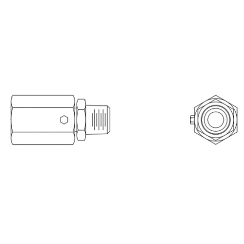 Hydraulics™ In-Line Swivel, Series: S, Connection Type 1: NPTF, Gender 1: Female, Connection Size 1: 3/4 in, Thread Size 1: 3/4-14, Connection Type 2: NPTF, Gender 2: Male, Connection Size 2: 3/4 in, Thread Size 2: 3/4-14, Hex Size: 1-1/4 x 1-1/4 in, 3000 psi, Material Construction: Carbon Steel, Finish: Zinc-Plated, Dimensions: 3 in W, -30 to 250 deg F