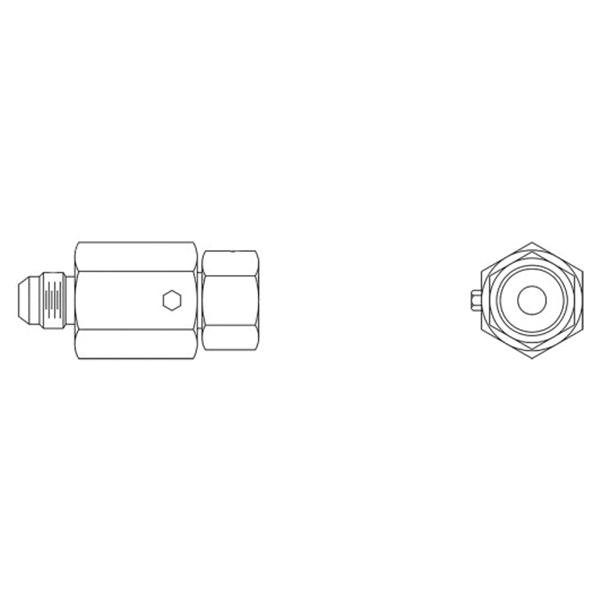 Hydraulics™ In-Line Swivel, Series: S, Connection Type 1: 37 deg JIC Flare, Gender 1: Male, Connection Size 1: 3/4 in, Thread Size 1: 1-1/16-12, Connection Type 2: 37 deg JIC Flare, Gender 2: Female, Connection Size 2: 3/4 in, Thread Size 2: 1-1/16-12, Hex Size: 1-1/4 x 1-1/4 in, 3000 psi, Material Construction: Carbon Steel, Finish: Zinc-Plated, Dimensions: 2.89 in W, -30 to 250 deg F