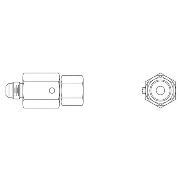 Hydraulics™ In-Line Swivel, Series: S, Connection Type 1: 37 deg JIC Flare, Gender 1: Male, Connection Size 1: 3/8 in, Thread Size 1: 9/16-18, Connection Type 2: NPTF, Gender 2: Female, Connection Size 2: 3/8 in, Thread Size 2: 3/8-18, Hex Size: 1 x 1 in, 3000 psi, Material Construction: Carbon Steel, Finish: Zinc-Plated, Dimensions: 2.68 in W, -30 to 250 deg F